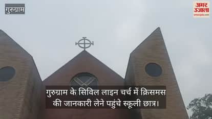 गुरुग्राम के सिविल लाइन स्थित चर्च में क्रिसमस की जानकारी लेने के लिए विभिन्न स्कूलों के बच्चे आ रहे हैं। इस दौरान बच्चों को जानकारी दी जा रही है। बच्चे क्रिसमस पर चर्च में मस्ती करते हुए नजर आ रहे हैं। स्कूली बच्चे सांता क्लॉस की ड्रेस में आ रहे हैं।
