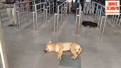 गुरुग्राम रेलवे स्टेशन के आरक्षण टिकट काउंटर हॉल में आवारा कुत्तों का आतंक