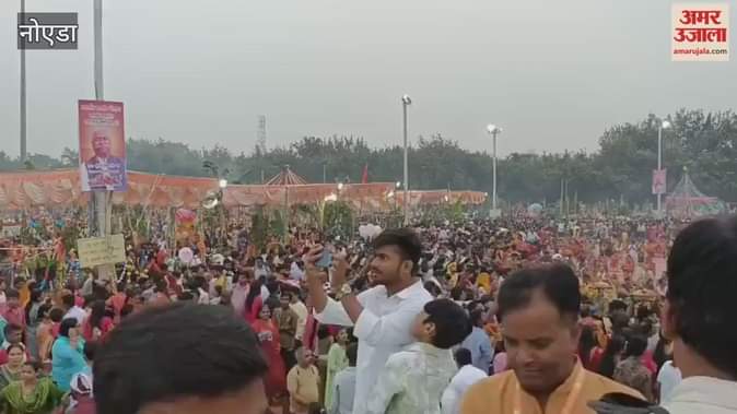 छठ पर्व पर नोएडा स्टेडियम में श्रद्धालुओं की भीड़