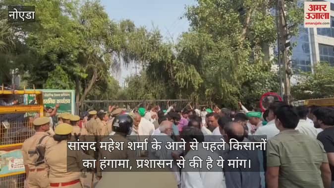 VIDEO : नोएडा प्राधिकरण के बाहर किसानों का हंगामा, मेन गेट के सामने बैठे