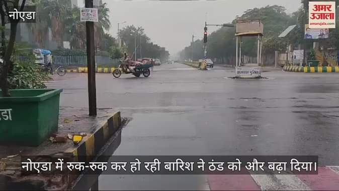 VIDEO : नोएडा में रुक-रुक कर बारिश ने बढ़ाई ठंड, सड़कों पर जल भराव और जाम