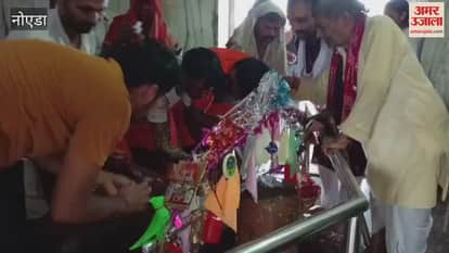 रबूपुरा के भाईपुर ब्रह्मनान गांव स्थित नानकेश्वर महादेव पुरम शिव मंदिर पर कांवड़ चढ़ाते कांवड़िए।