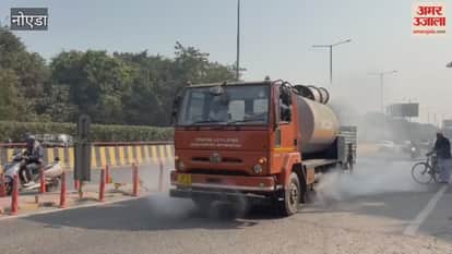 Noida: बढ़ते प्रदूषण पर नियंत्रण, नोएडा प्राधिकरण ने एंटी-स्मॉग गन से किया पानी का छिड़काव