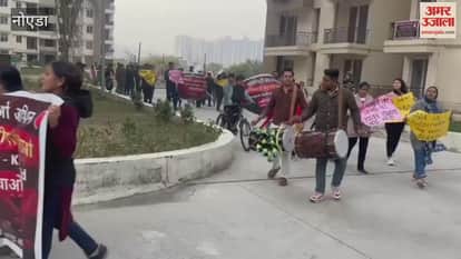 ग्रेटर नोएडा: मेंटेनेंस फंड घोटाले के विरोध में सोसाइटी में ढोल-नगाड़ों के साथ निकाली रैली
