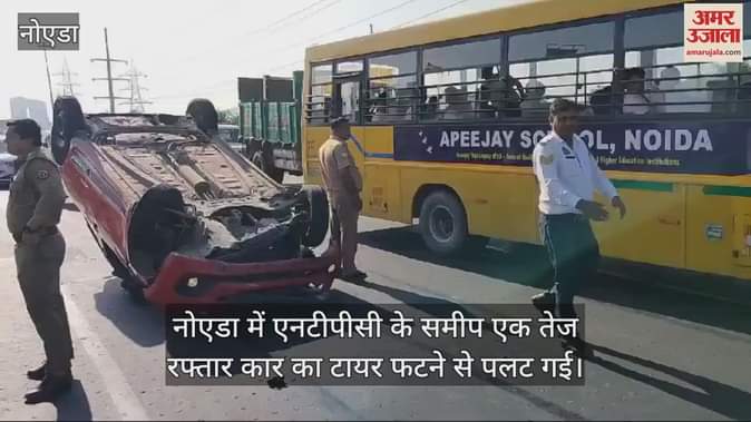 नोएडा एलिवेटेड रोड पर सेक्टर 24 थाना क्षेत्र के एनटीपीसी के समीप एक तेज रफ्तार कार टायर फटने से पलट गई। घटना के में सेक्टर 49 निवासी यश शर्मा और उनके एक दोस्त कार में सवार थे। दोनों सुरक्षित हैं हल्की चोट आई। मौके पर पहुंचे ट्रैफिक और थाना पुलिस क्रेन की मदद से कर को हटाने में जुटी हुई है।