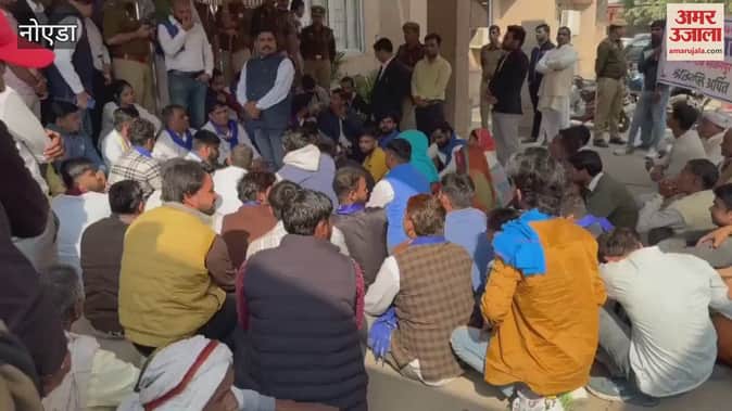 ग्रेटर नोएडा के भीकनपुर गांव में कमल हत्याकांड में दोषियों पर कार्रवाई की मांग को लेकर कलेक्ट्रेट पर प्रदर्शन करते ग्रामीण और भीम आर्मी के कार्यकर्ता। आरोपी पक्ष की पंचायत पर कार्रवाई नहीं करने का आरोप लगाया है