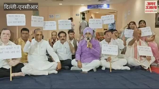 VIDEO : दिल्ली में घरों से कूड़ा उठाने का चार्ज वसूलने के फैसले के खिलाफ भाजपा पार्षद, एमसीडी मेयर ऑफिस के बाहर धरना