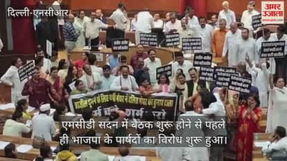 VIDEO : MCD सदन में बैठक शुरू होने से पहले भाजपा पार्षदों का हंगामा, मेयर की कुर्सी पर लगाए पोस्टर