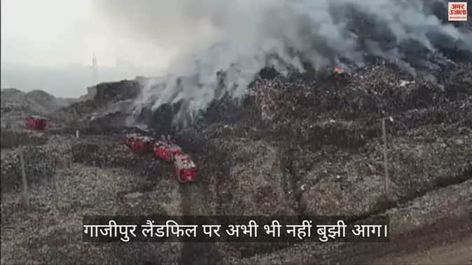 VIDEO : गाजीपुर लैंडफिल साइट से धुआं निकलना जारी, दमकल कर्मी अभी भी मौजूद