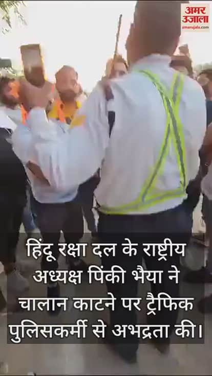 VIDEO : 'जय माता दी' लिखे वाहन का चालान काटने पर हिंदू रक्षा दल ने किया बवाल, अध्यक्ष बोले- योगी को बुला...