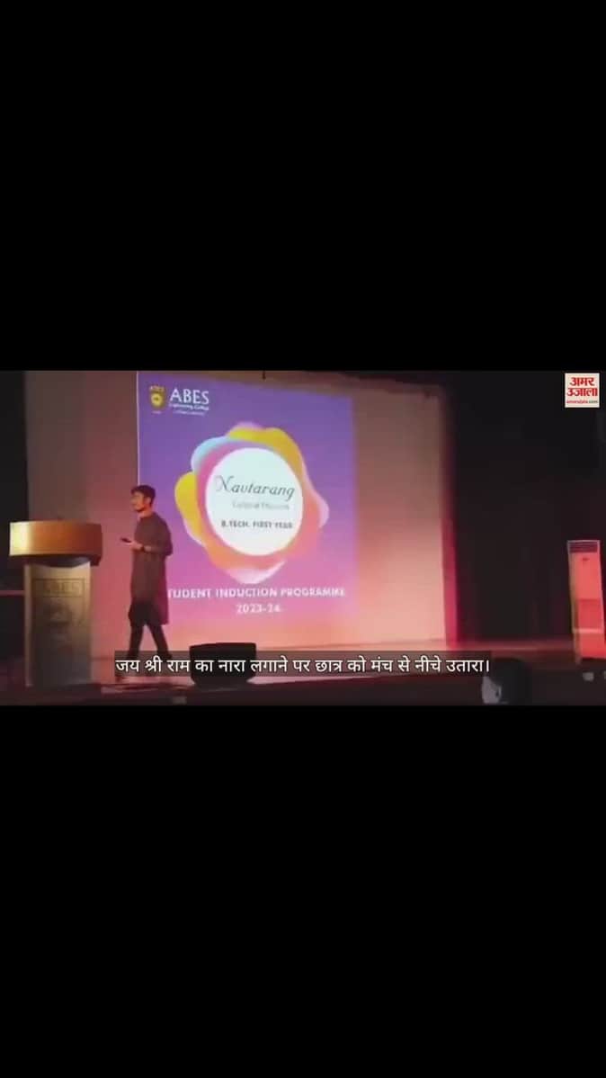 गाजियाबाद के एबीईएस इंजीनियरिंग कॉलेज में सांस्कृतिक प्रोग्राम का आयोजन था। कार्यक्रम के दौरान छात्र को मंच पर बुलाया गया। छात्र के मंच पर पहुंचने पर सामने बैठे स्कूल के अन्य छात्रों ने जय श्री राम का उद्घोष किया। इसके जवाब में छात्रा ने भी मंच से जय श्री राम बोल दिया। छात्र के जय श्री राम बोलते ही टीचर भड़क गईं और उसे मंच से उतार दिया। महिला प्रोफेसर का कहना है कि यह कॉलेज का सांस्कृतिक प्रोग्राम है और इसमें यह अलाउड नहीं है।