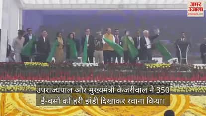 VIDEO : LG और सीएम केजरीवाल ने एक साथ 350 इलेक्ट्रिक बसों को दिखाई हरी झंडी