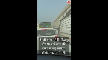 VIDEO : दिल्ली के कालिंदी कुंज रोड पर रेंगती नजर आईं गाडियां, दो घंटे से फंसे हैं यात्री