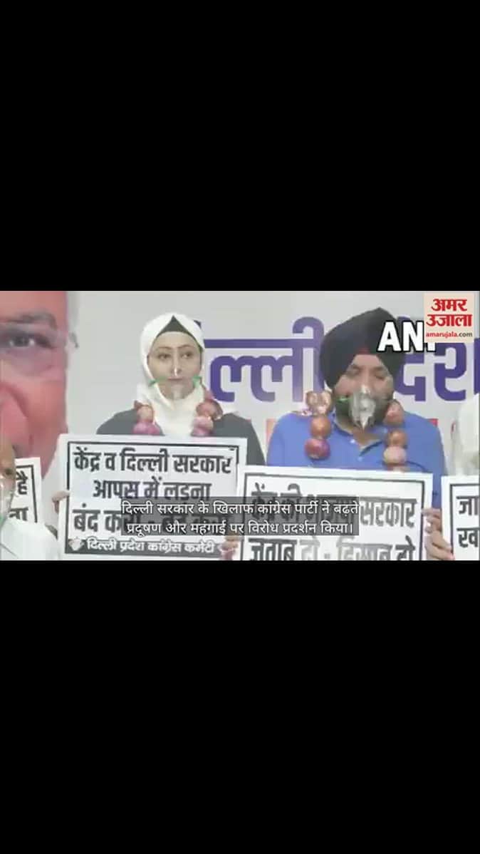 VIDEO : दिल्ली में कांग्रेस का प्रदर्शन, अरविंदर सिंह लवली समेत कई नेताओं ने पहनी प्याज की माला और ऑक्सीजन मास्क
