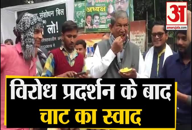 जंतर-मंतर पर CAB एक्ट का विरोध : कांग्रेस नेता हरीश रावत ने लिया चाट का स्वाद, शेयर किया वीडियो