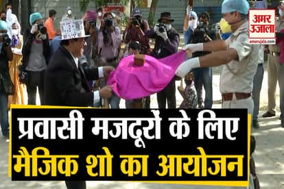 दिल्ली में जो मजदूर शेल्टर होम में रह रहे हैं उनके लिए दिल्ली पुलिस ने मैजिक शो का आयोजन करवाया। जादूगर राज कुमार ने इन्हें जादू के करतब दिखाए।