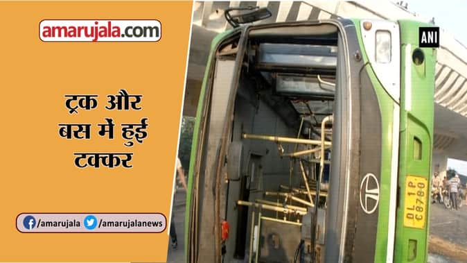 वजीराबाद फ्लाईओवर पर ट्रक से टकराई बस