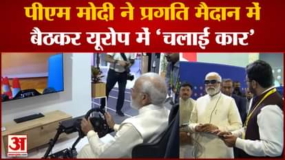 पीएम मोदी ने दिल्ली के प्रगति मैदान में बैठकर यूरोप में 'चलाई कार'