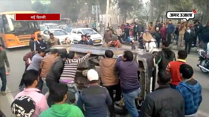 VIDEO: राजधानी दिल्ली में पलटी स्कूल वैन, कई बच्चे घायल