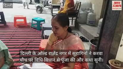 दिल्ली के ओल्ड राजेंद्र नगर में सुहागिनों ने करवा चौथ पर विधि विधान से पूजा की और कथा सुनी। करवा चौथ व्रत की रौनक रविवार को खासी नजर आई। चांद का इंतजार करती सुहागिनों महिलाओं की टोलियां शाम से ही छतों पर नजर आई। चंद्रमा के इंतजार में शाम कटी।