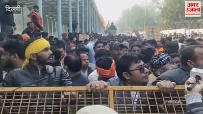दिल्ली: बांग्लादेश में हुए हिंदुओं पर हमले के विरोध में प्रदर्शन करते हिंदू संगठनों के कार्यकर्ता