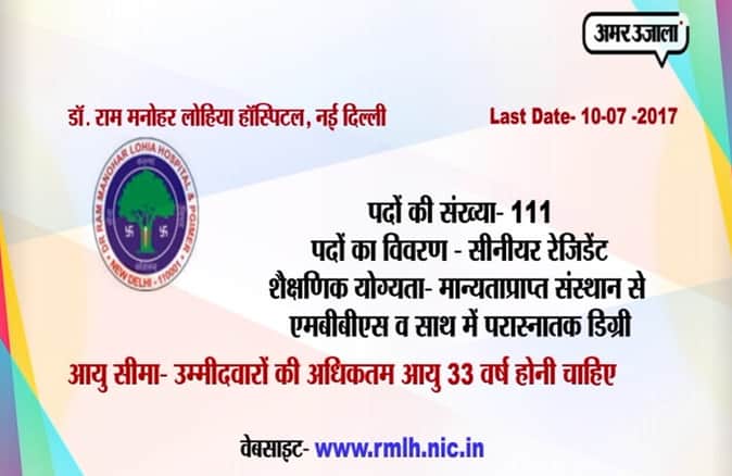 डॉ. राम मनोहर लोहिया हॉस्पिटल में है सीनियर रेजिडेंट डाक्टरों की जरूरत