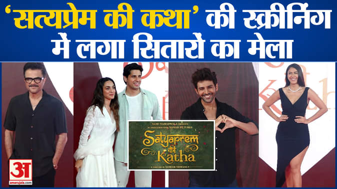 कार्तिक आर्यन और कियारा आडवाणी की फिल्म सत्य प्रेम की कथा आज सिनेमाघरों में रिलीज हो चुकी है। बीते दिन इस फिल्म की स्क्रीनिंग का आयोजन किया गया जिसमें इंडस्ट्री के कई सितारे शामिल हुए।