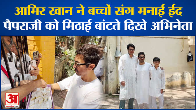 Bollywood News:Aamir Khan ने बच्चों संग मनाई ईद, पैपराजी को मिठाई बांटते दिखे अभिनेता