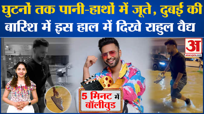 Bollywood News:घुटनों तक पानी-हाथों में जूते,Dubai की बारिश में इस हाल में दिखे Rahul l Flash Flood