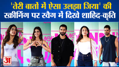Bollywood News: 'तेरी बातों में ऐसा उलझा जिया' की स्क्रीनिंग पर स्वैग में दिखे Shahid Kapoor-Kriti Sanon