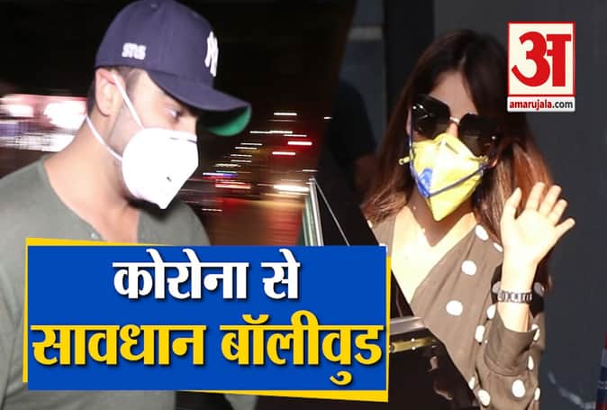 बॉलीवुड भी बरत रहा कोरोना वायरस से सावधानी, अर्जुन कपूर और यामी मास्क पहने आए नजर