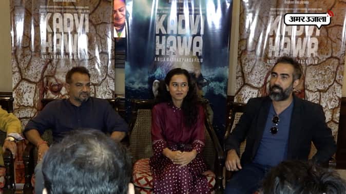राजकुमार राव स्टारर 'न्यूटन' की कामयाबी और उसको ऑस्कर तक पहुंचाने वाले निर्माता मनीष मूंदड़ा अब अपनी नई फिल्म कड़वी हवा लेकर आए हैं। फिल्म की थीम क्लाइमेट चेंज हैं और मुख्य भूमिका में संजय मिश्रा और रणवीर शौरी नजर आएंगे। फिल्म प्रमोशन में जुटी स्टारकास्ट ने फिल्म से जुड़ा एक्सपीरियंस शेयर किया।