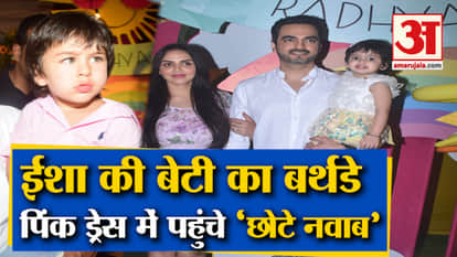 हाल ही में एक्ट्रेस ईशा देओल ने अपनी बेटी राध्या का जन्मदिन मनाया। हेमा मालिनी अपनी नातिन राध्या को आशीर्वाद देने पहुंची तो वहीं कई स्टार किड्स भी पार्टी का हिस्सा बने। इस दौरान सैफ अली खान और करीना कपूर के बेटे तैमूर पिंक शर्ट में बेहद क्यूट नजर आ रहे थे।