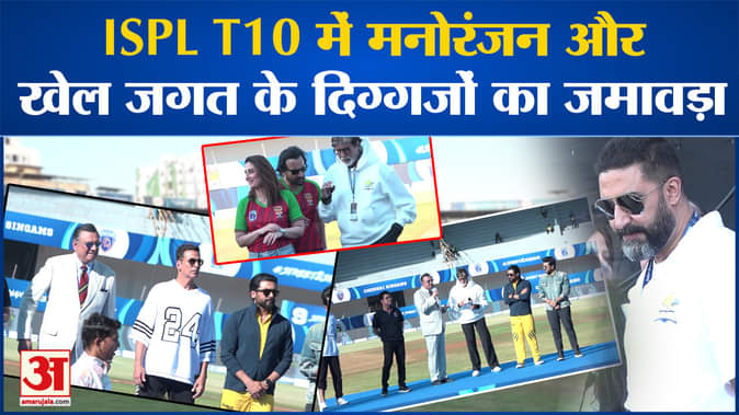 ISPL T10: आईएसपीएल टी 10 में पहुंचे अमिताभ बच्चन और सचिन तेंदुलकर समेत कई सितारे