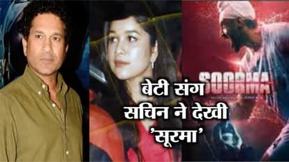पंजाबी सुपरस्टार दिलजीत दोसांझ की फिल्म सूरमा 13 जुलाई को सिनेमाघरों में रिलीज होने वाली है। इससे पहले मुंबई में फिल्म की स्पेशल स्क्रीनिंग रखी गई। जिसमें खेल से लेकर सिने जगत की कई हस्तियां पहुंची। और सबसे खास रहा यहां मास्टर ब्लास्टर सचिन तेंदुलकर को देखना जो अपनी फैमिली के साथ पहुंचे।