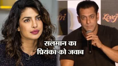 सलमान खान ने पहली बार अपनी बिग बजट फिल्म 'भारत' की शूटिंग शुरू करने से पहले प्रियंका चोपड़ा के अचानक फिल्म छोड़ने पर चुप्पी तोड़ी है। सलमान ने फिल्म 'लवरात्रि' के ट्रेलर लॉन्च पर प्रियंका के फिल्म छोड़ने के सवाल का जवाब दिया। आइए दिखाते हैं क्या कहा सलमान ने।