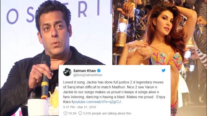 इन दिनों जैकलीन फर्नांडीज पर फिल्माए गए गाने 'एक दो तीन' की चारों ओर से आलोचनाएं हो रही हैं। लेकिन इसी बीच उनके को-स्टार सलमान खान सामने आए हैं और जैकलीन का कुछ इस अंदाज में बचाव करते दिख रहे हैं। सलमान और जैकलीन फिल्म 'किक' के बाद अब फिल्म रेस 3 में भी साथ नजर आएंगे।