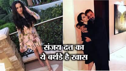 sanjay dutt celebrating his 59th birthday WITH MANYTA and daughter trishala dutt- wishes him by post