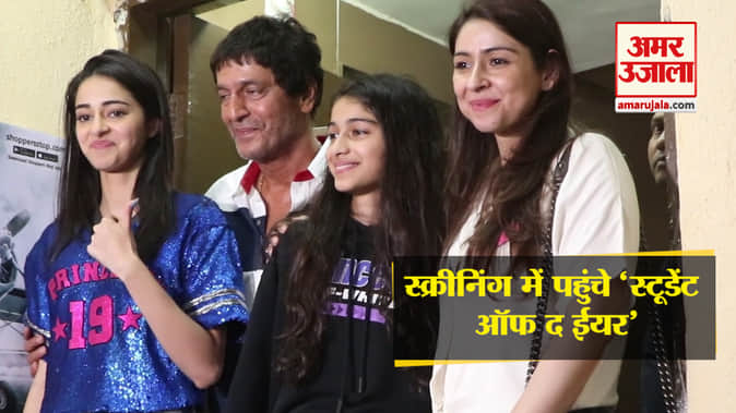 फिल्म स्टूडेंट्स ऑफ द ईयर 2 की खास स्क्रीनिंग हुई। अन्नया पांड, तारा सुतारयिा और टाइगर श्रॉफ यहां पहुंचे। फिल्म की स्क्रीनिंग पर प्रोड्यूसर करण जौहर भी कलरफुल अवतार में पहुंचे।