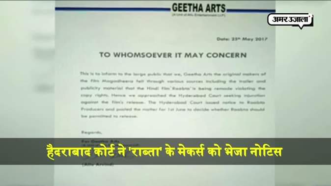 सुशांत सिंह राजपूत और कृति सेनन की फिल्म 'राब्ता' रिलीज होने से पहले ही मुश्किलों में आ गई। तमिल फिल्म 'मगधीरा' के मेकर्स ने फिल्म 'राब्ता' पर साहित्यिक चोरी का आरोप लगाया है। 'मगधीरा' के प्रोड्यूसर अल्लु अरविंद ने फिल्म को कॉपीराइट का उल्लंघन बताया। मामला दर्ज होने के बाद हैदराबाद कोर्ट ने फिल्म राब्ता के मेकर्स को नोटिस भेजा है। साथ ही फिल्म की रिलीज से पहले 1 जून को सुनवाई की तारीख तय की गई है।