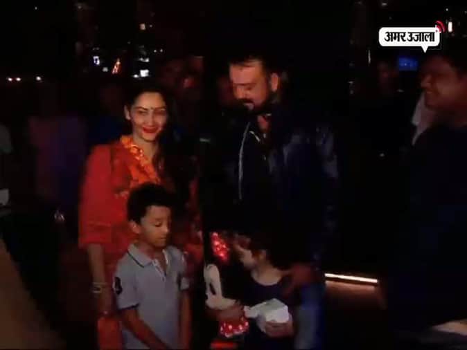 बॉलीवुड के मुन्नाभाई यानी संजय दत्त अपनी फैमिली के साथ आउटिंग करते नजर आए। संजू बाबा के साथ उनकी वाइफ मान्यता और ट्विंस इकरा और शाहरान मुंबई के एक रेस्त्रां में डिनर करने के लिए पहुंचे थे। संजय दत्त के फैंस के लिए अच्छी खबर ये है कि संजू बाबा जनवरी 2017 से अपनी नई फिल्म की शूटिंग शुरू करने जा रहे हैं।