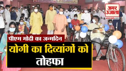 देश के प्रधानमंत्री नरेंद्र मोदी का आज 70वां जन्मदिन है। उन्हें देश-विदेश से बधाईयों का तांता लगा हुआ है। वहीं गोरखपुर में सीएम योगी आदित्यनाथ ने अलग अंदाज में प्रधानमंत्री का जन्मदिवस मनाया। मुख्यमंत्री योगी ने 140 दिव्यांगों को ट्राई साइकिल और अन्य उपकरण भेंट किए।