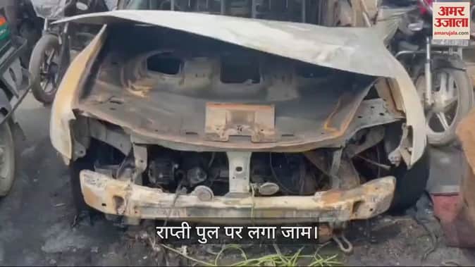 गोरखपुर के राप्ती नदी पर अचानक एक चार पहिया गाड़ी में आग लग गई। गाड़ी जलकर खाक हो गई। इस दौरान सड़क किनारे गाड़ी खड़ी रही और रास्ता जाम हो गया है। राहगीरों के मुताबिक, हादसे में सिर्फ गाड़ी जलकर खाक हुई है। गाड़ी के अंदर सवार बैठे लोग समय से बाहर निकल गए थे।
