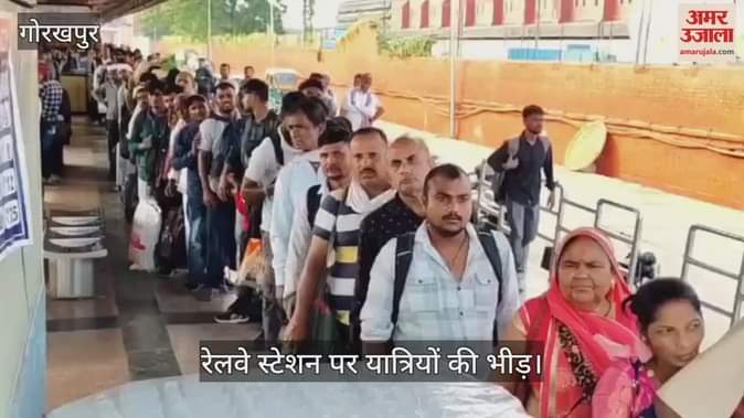 छठ पूजा होने के बाद अब घर से वापस जाने वाले वाले यात्रियों की भीड़ रेलवे स्टेशन पर दिखने लगी है। मंगलवार को गोरखपुर रेलवे स्टेशन पर दिल्ली जाने वाली ट्रेन में यात्रियों की भीड़ दिखी। धक्का-मुक्की के बीच कई यात्री कोच तक पुहंचने की जद्दोजहद में भिड़े रहे।
