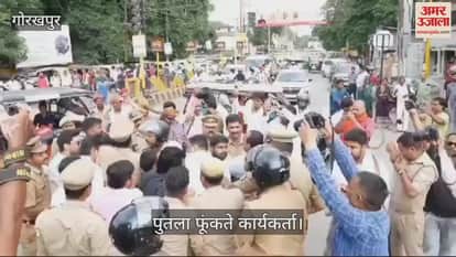 गोरखपुर के अम्बेडकर चौराहे पर भाजयुमो कार्यकर्ताओं ने पूर्व मुख्यमंत्री अखिलेश यादव का सांकेतिक पुतला फूंका। इस दौरान पुलिस और कार्यकर्ताओं के बीच पुतला फुंकने को लेकर छीना-झपटी भी हुई। अंत में कार्यकर्ताओं ने सांकेतिक ही सही, लेकिन पुतना फूंक दिया।