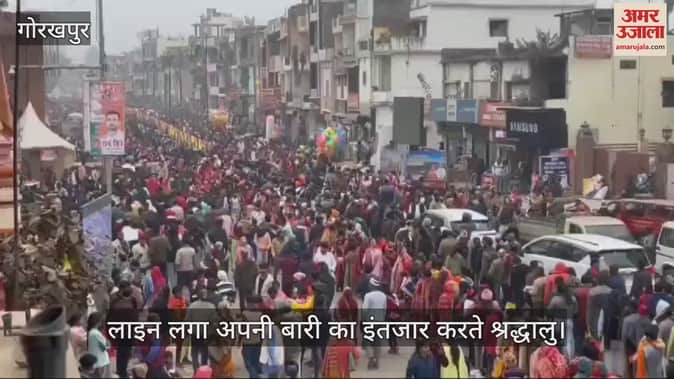 VIDEO : गोरक्षनाथ मंदिर में उमड़ा अस्था का जनसैलाब, लंबी लाइन लगाकर चढ़ा रहे हैं खिचड़ी