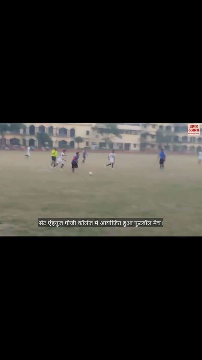 गोरखपुर में सेंट एंड्रयूज पीजी कॉलेज के फुटबॉल ग्राउंड में आयोजित जिला स्तरीय आमंत्रण प्राइजमनी फुटबॉल टूनामेंट में शुक्रवार को एमपी फुटबॉल क्लब और सनातन स्पोर्ट क्लब की टीम के बीच खेला गया फुटबॉल मैच।