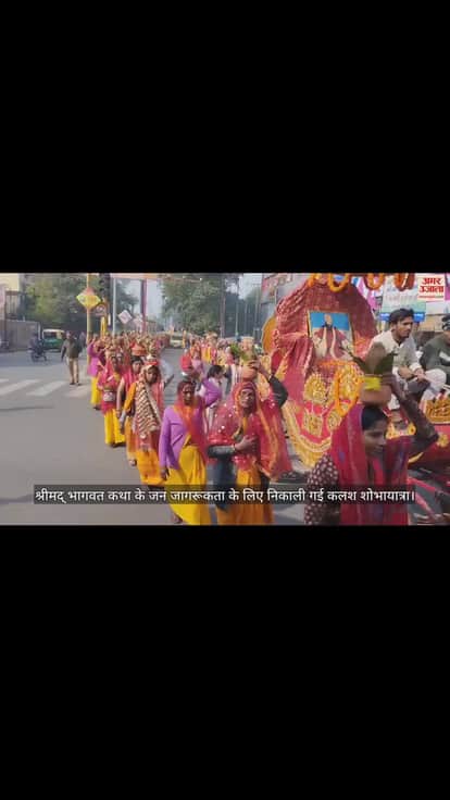 VIDEO : गोरखपुर में श्रीमद् भागवत कथा के लिए निकाली गई कलश शोभायात्रा