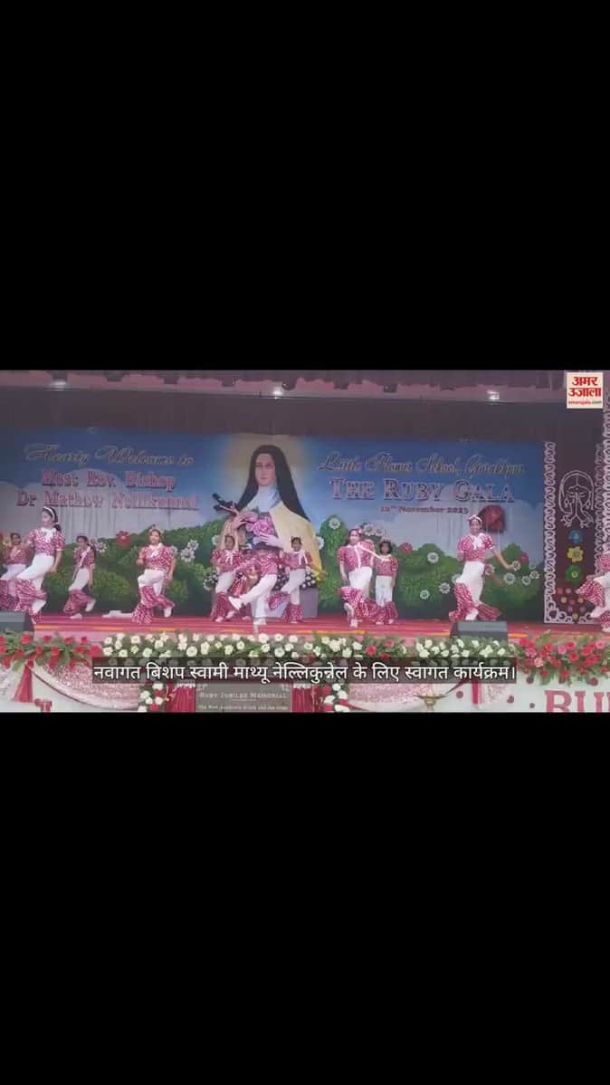 गोरखपुर शहर के धर्मपुर स्थित लिटिल फ्लावर स्कूल में नवागत बिशप स्वामी माथ्यू नेल्लिकुन्नेल के आगमन पर आयोजित स्वागत कार्यक्रम में सांस्कृतिक कार्यक्रम प्रस्तुत करते बच्चे।