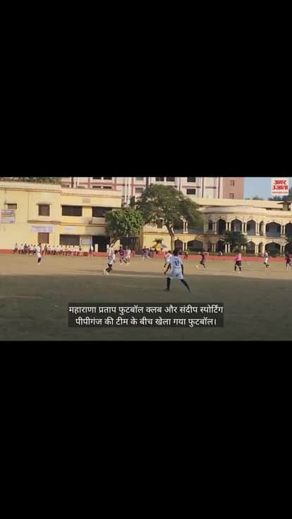 गोरखपुर में सेंट एंड्रयूज पीजी कॉलेज के फुटबॉल ग्राउंड में आयोजित जिला स्तरीय आमंत्रण प्राइजमनी फुटबॉल टूर्नामेंट में शनिवार को महाराणा प्रताप फुटबॉल क्लब और संदीप स्पोर्टिंग पीपीगंज की टीम के बीच खेला गया फुटबॉल मैच।